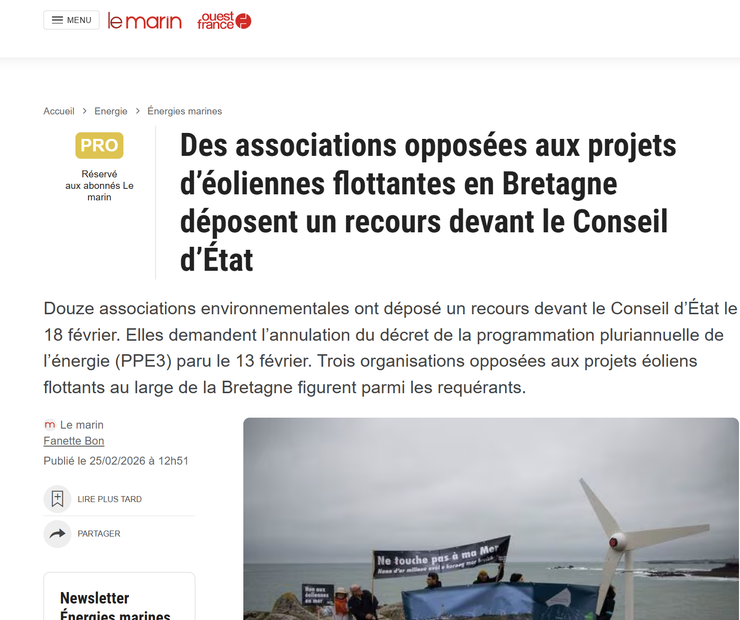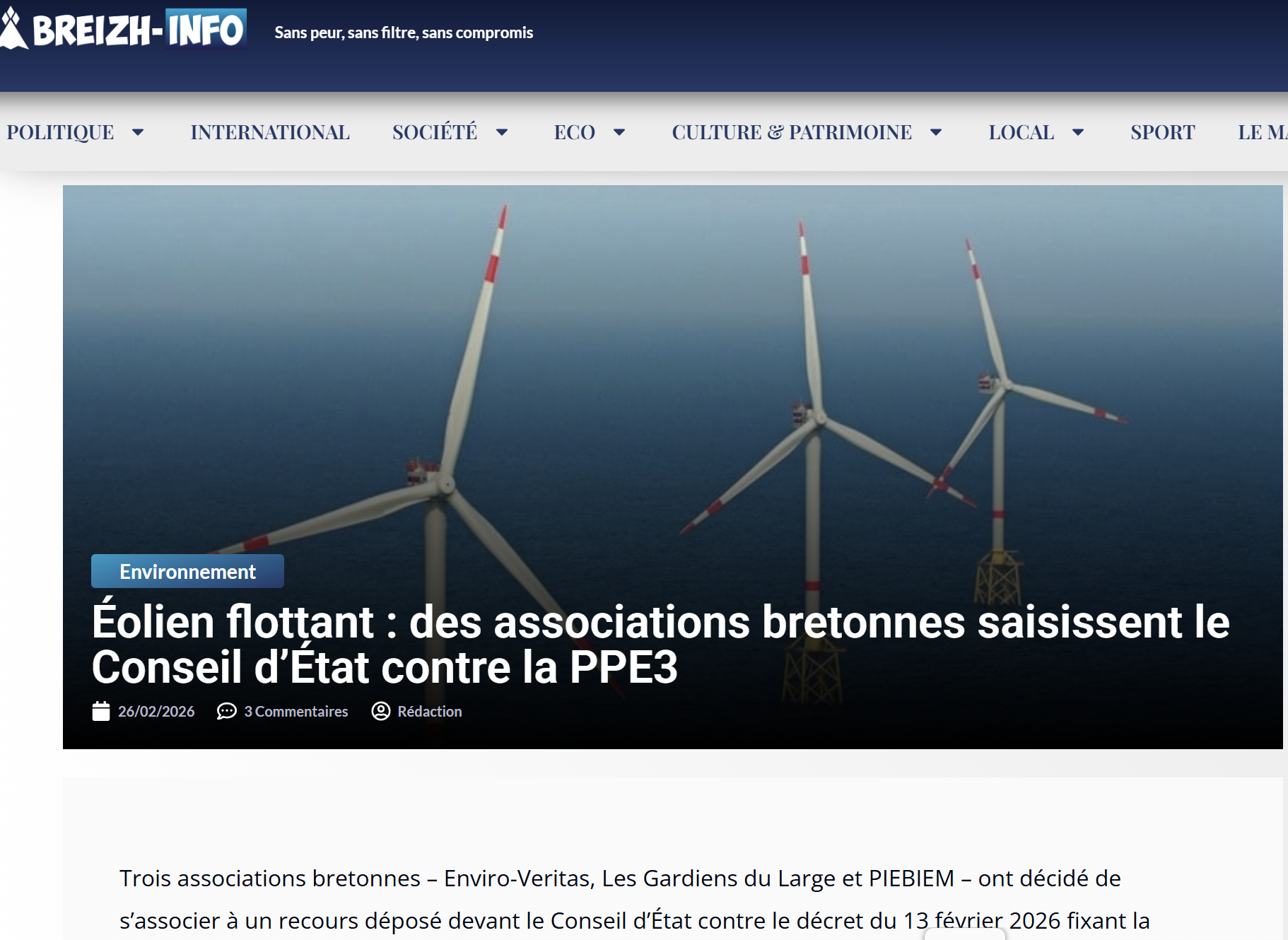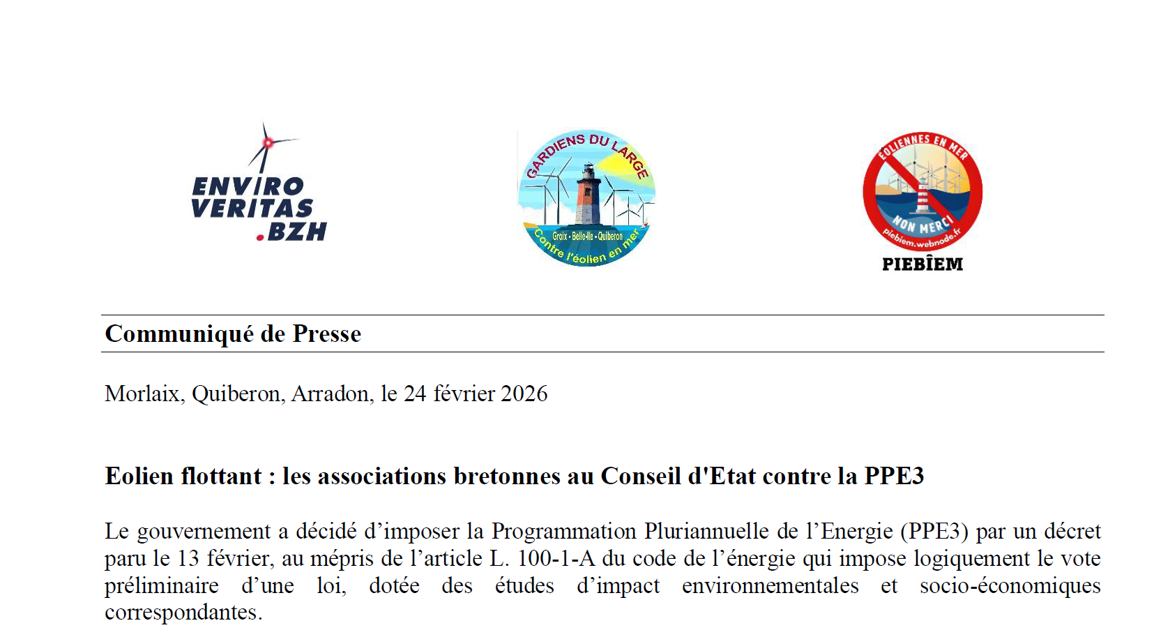 CP PIEBÎEM/Enviro Veritas/Gardiens du Large -24 février 2026: Eolien flottant : les associations bretonnes au Conseil d'Etat contre la PPE3