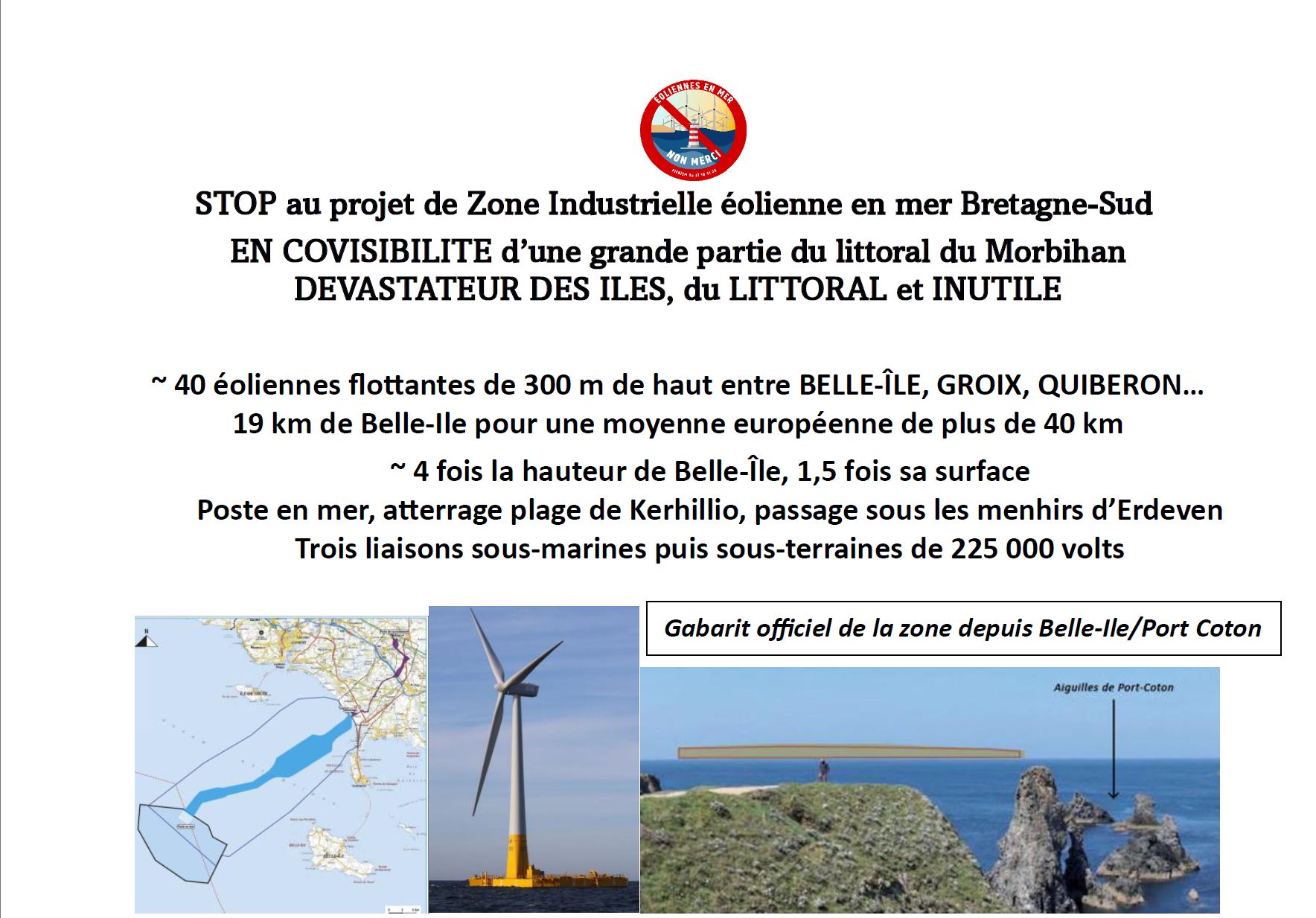 STOP au projet de Zone Industrielle éolienne en mer Bretagne-Sud, EN COVISIBILITE d'une grande partie du littoral du Morbihan