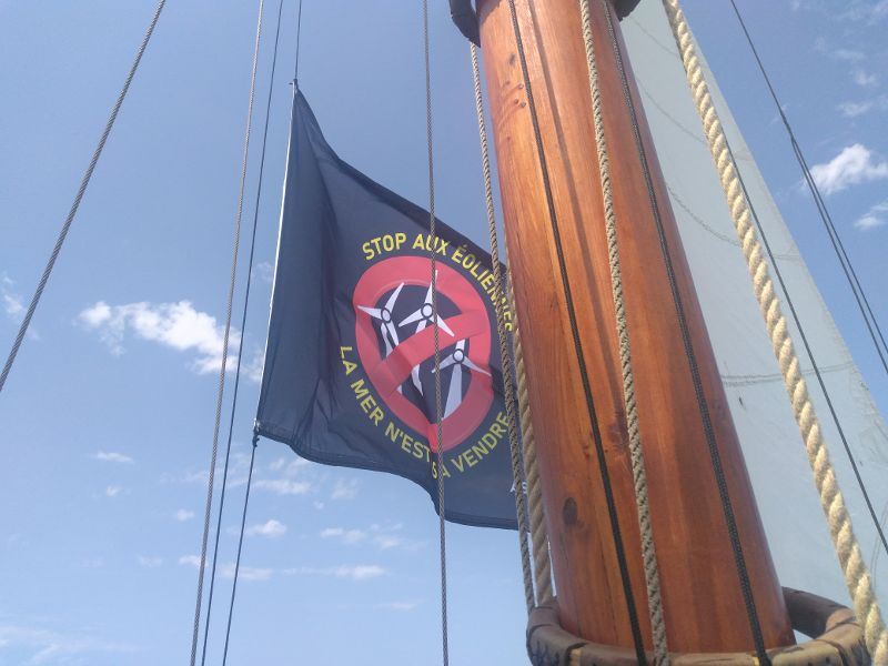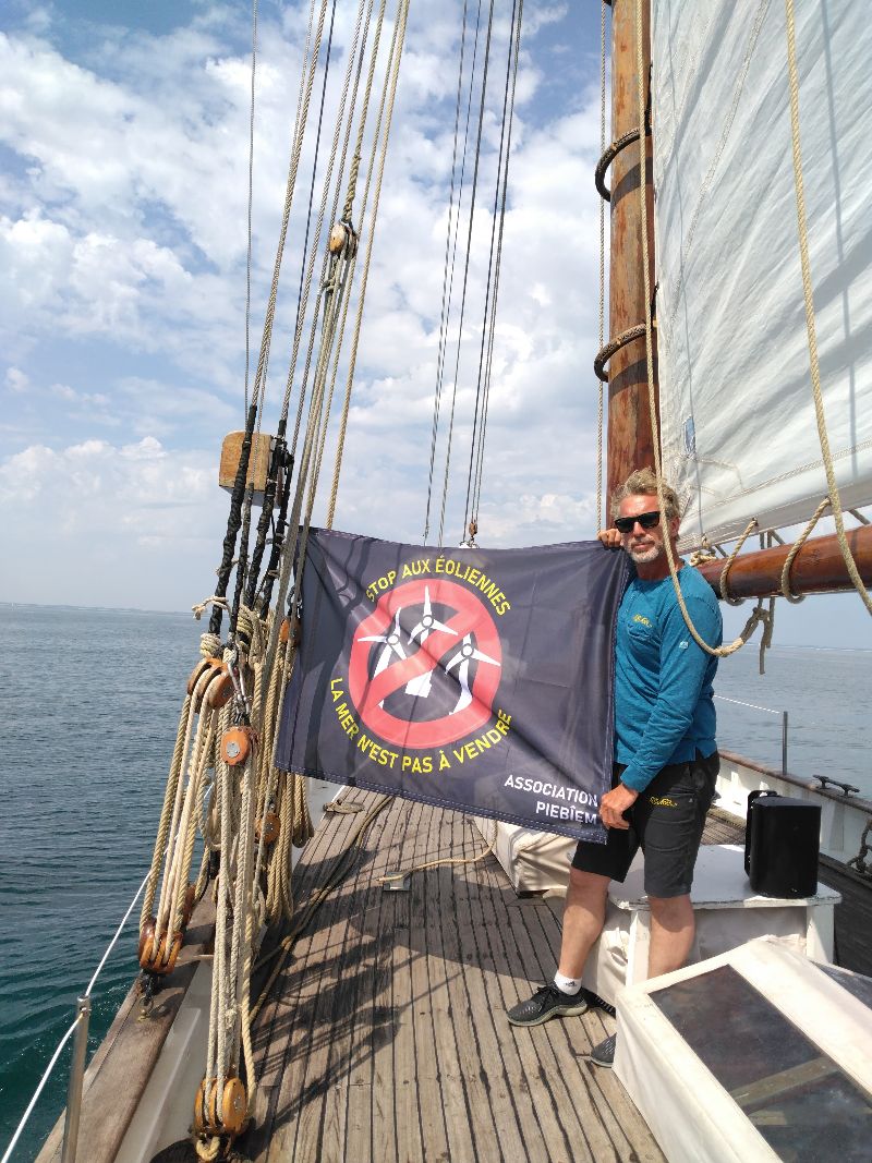 Et comme vous pouvez le voir, le Lys Noir, avec son capitaine Yoann Pageaud, a rejoint avec PIEBÎEM la lutte contre les éoliennes en mer en général et Bretagne sud en particulier !