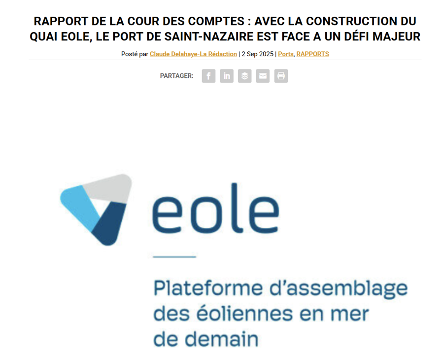 Aménagements de Saint-Nazaire pour l’éolien flottant (EOLE) : la Cour des Comptes critique "un pari non dénué de risques" et "des besoins de financements exceptionnels non précisément chiffrés et non assurés"