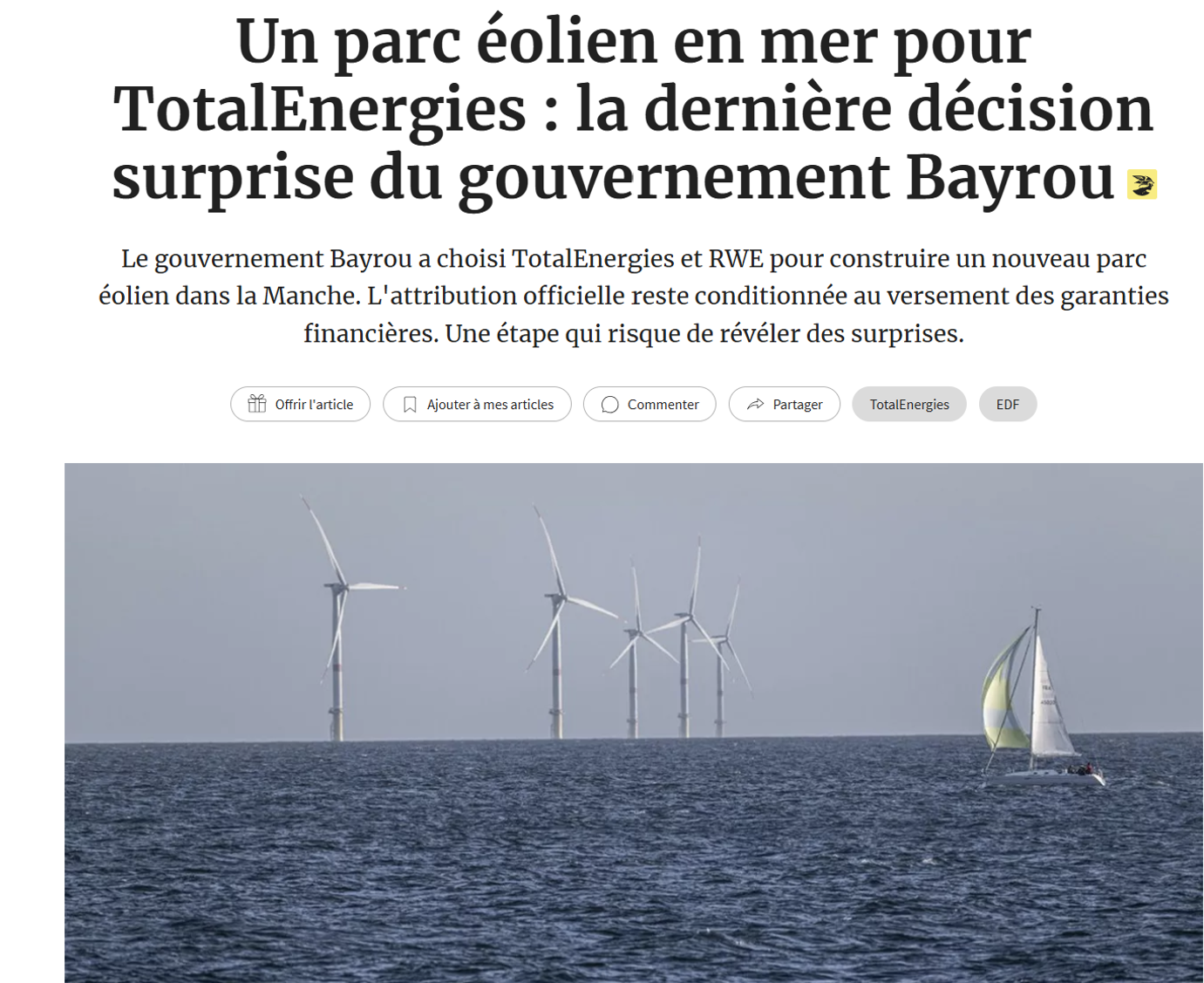 Attribution de Centre-Manche 2 à Total/RWE : encore une attribution éolien en mer très douteuse qui risque de coûter très cher au contribuable.