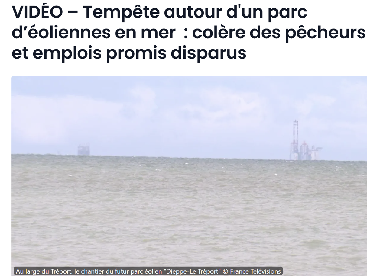 A la veille des assises de l'économie de la mer à La Rochelle et face au lobbying outrancier du secteur, PIEBÎEM fait le point sur l'actualité de l'éolien en mer. 1) Tempête autour du Tréport : colère des pêcheurs et emplois promis disparus ; 2) Le grand bazar de Centre-Manche 1 et 2 . Centre Manche 1 remis en cause et de toutes façons, ça ne sera pas moins de 50€/MWh – les mensonges du ministre Ferracci ; 3) Courseulles sur mer : le diagnostic écologique contesté, la protection de la biodiversité n'a pas été prise en compte (CNPN) ; 4) Marc Hirt, PDG D'Ocean Wind : « le risque de ne pas aller au bout d'un projet est perçu comme plus élevé qu'avant. » Le lobby ENR demande une baisse des dépôt de garantie. 5) Dernier appel d'offre pour 1 GW aux Pays-Bas : 0 réponse ! Vérité des coûts et fin du modèle sans subventions