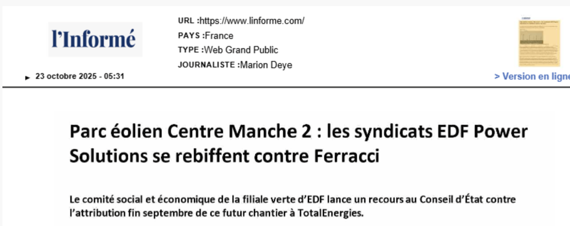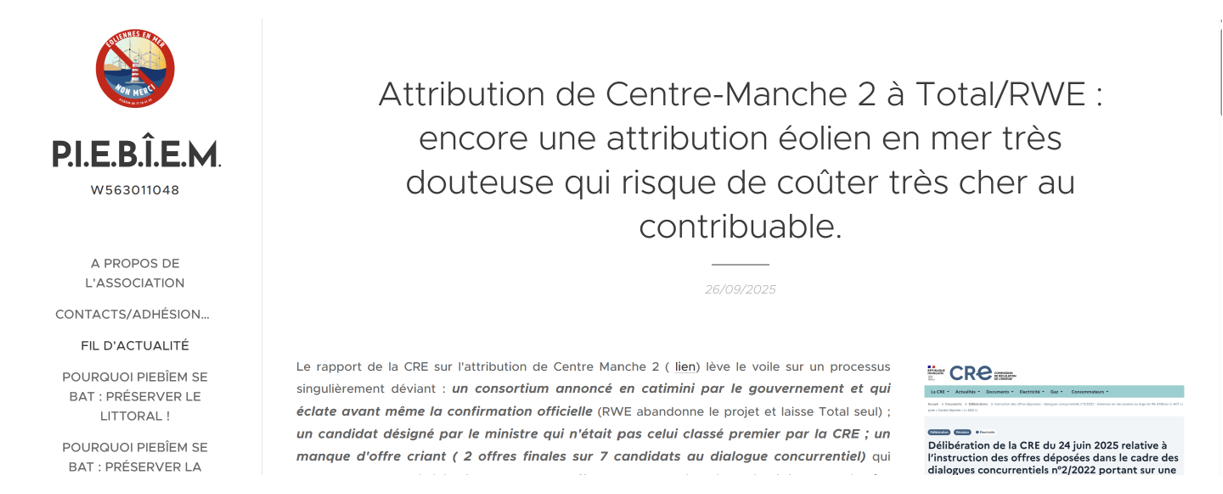 NB : Et pour ajouter au chaos, le Comité Social et Economique d'EDF Power solution ont engagé un recours devant le Conseil d'Etat pout contester l'attribution de Centre-Manche 2 à Total/RWE contre la recommandations de la CRE ! lien