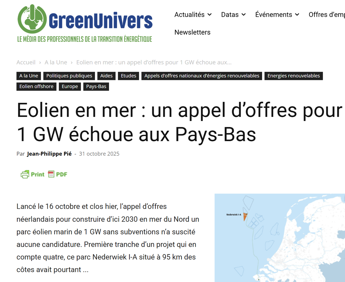 5) Dernier appel d'offre pour 1 GW aux Pays-Bas : 0 réponse ! Vérité des coûts et fin du modèle sans subventions