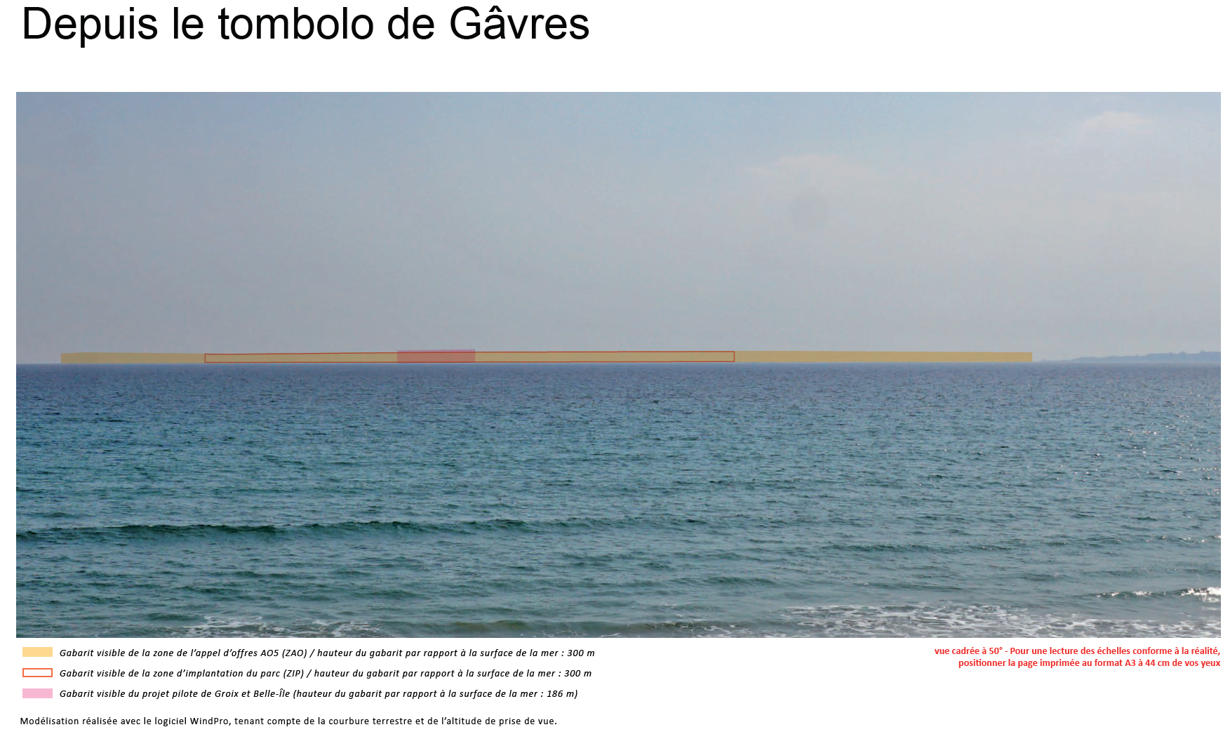 Gâvres : La DGEC reconnait un fort niveau d'enjeu en raison des paysages littoraux. « « Particulièrement naturels et préservés, les paysages de la Petite Mer de Gâvres ont une valeur forte », par exemple le tombolo de Gâvres, le vis à vis avec l'île de Groix. Ce sera pleine vue sur zone éolienne