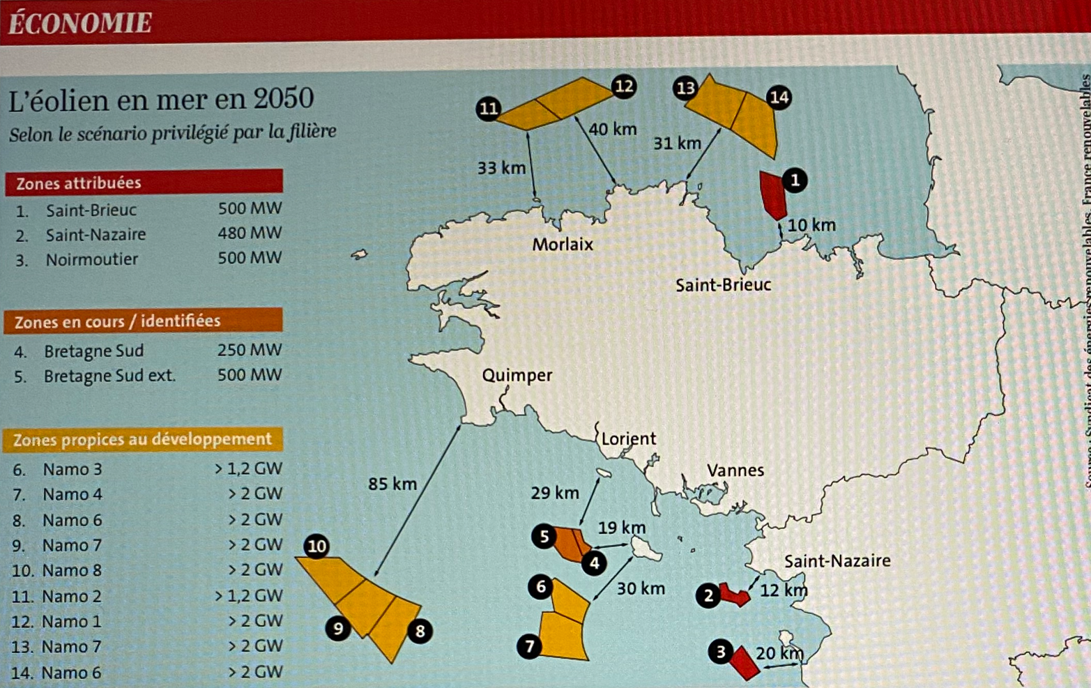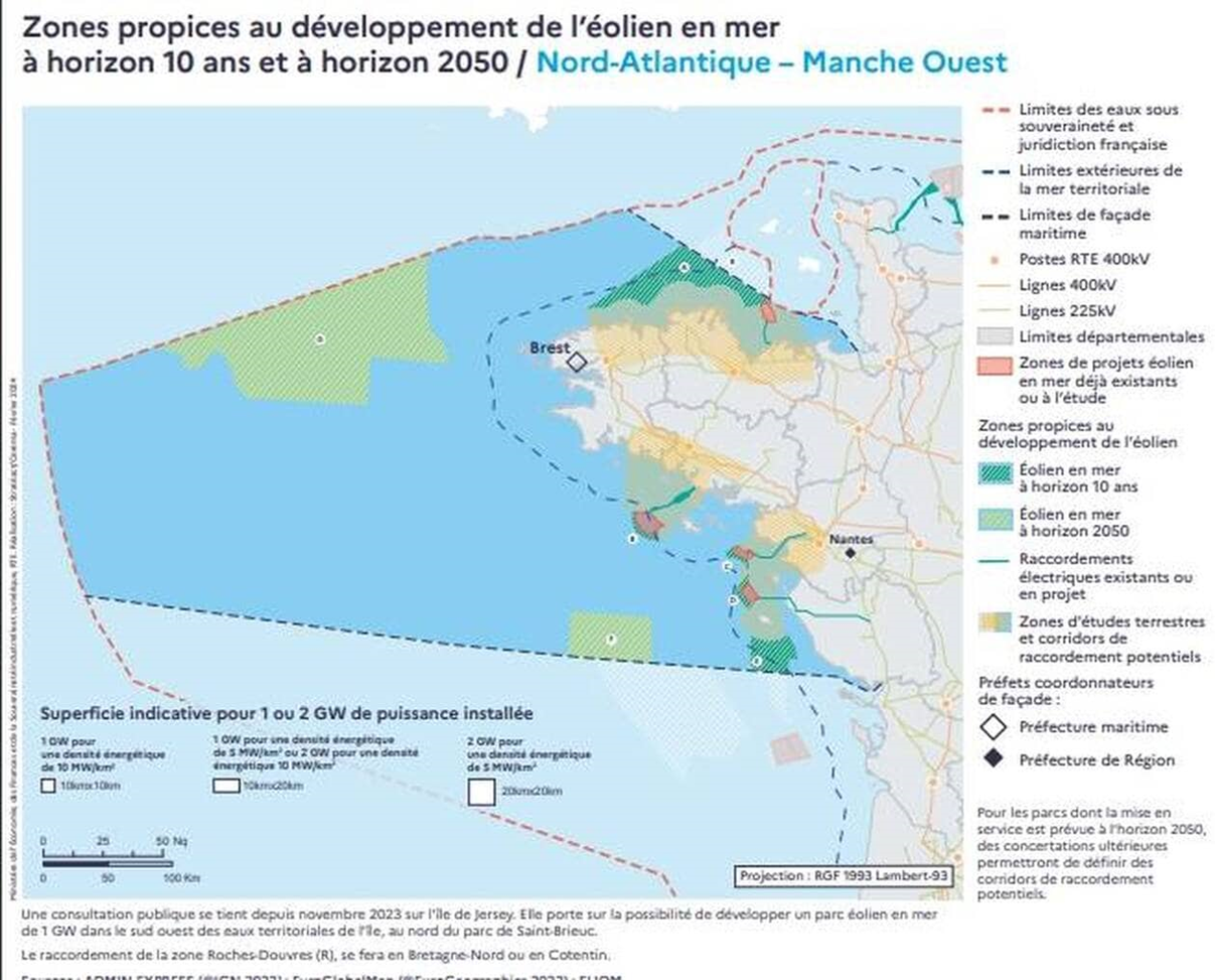 Pourtant, c'est vraiment Belle-Île sacrifiée avec une extension de Bretagne -Sud et une nouvelle zone industrielle éolienne gigantesque potentielle de 2200 km2 soit à moins de trente km au sud-ouest, selon la filière et 70 km selon les cartes diffusées par la CNDP, Belle-Île sacrifiée et dont le nom ne sera plus jamais qu'un mensonge ; C'est Saint-Nazaire- Guérande doublé en pleine visibilité de Belle-Île, Houat et Hoedic ! C'est toute le Bretagne-Nord de Morlaix à Saint-Brieuc corsetée de la grande barrière d'éolienne à 30 km du littoral. Le littoral breton défiguré !