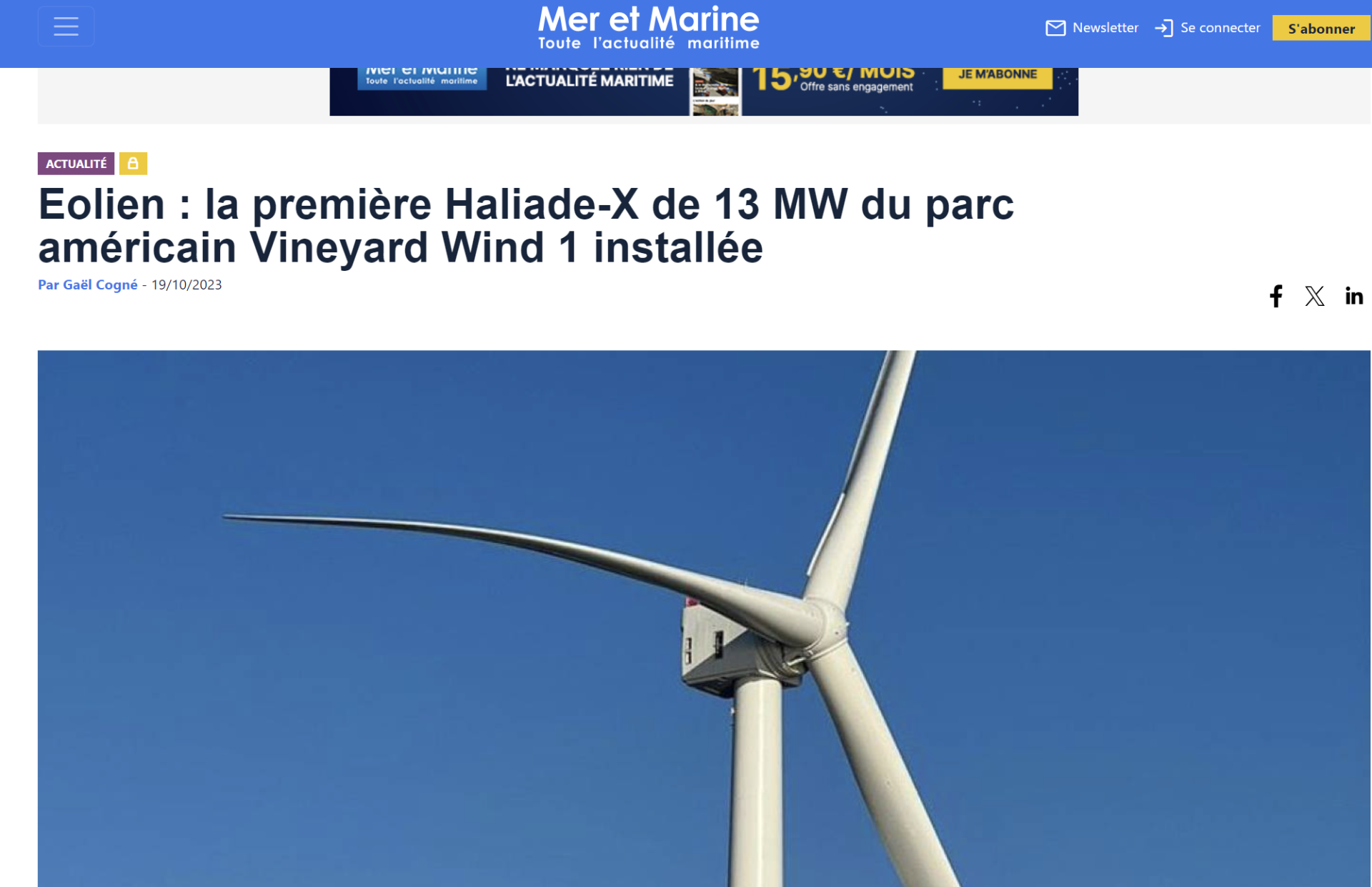 première éolienne GE Vernova Haliade-X de 13 mégawatts dans les eaux au