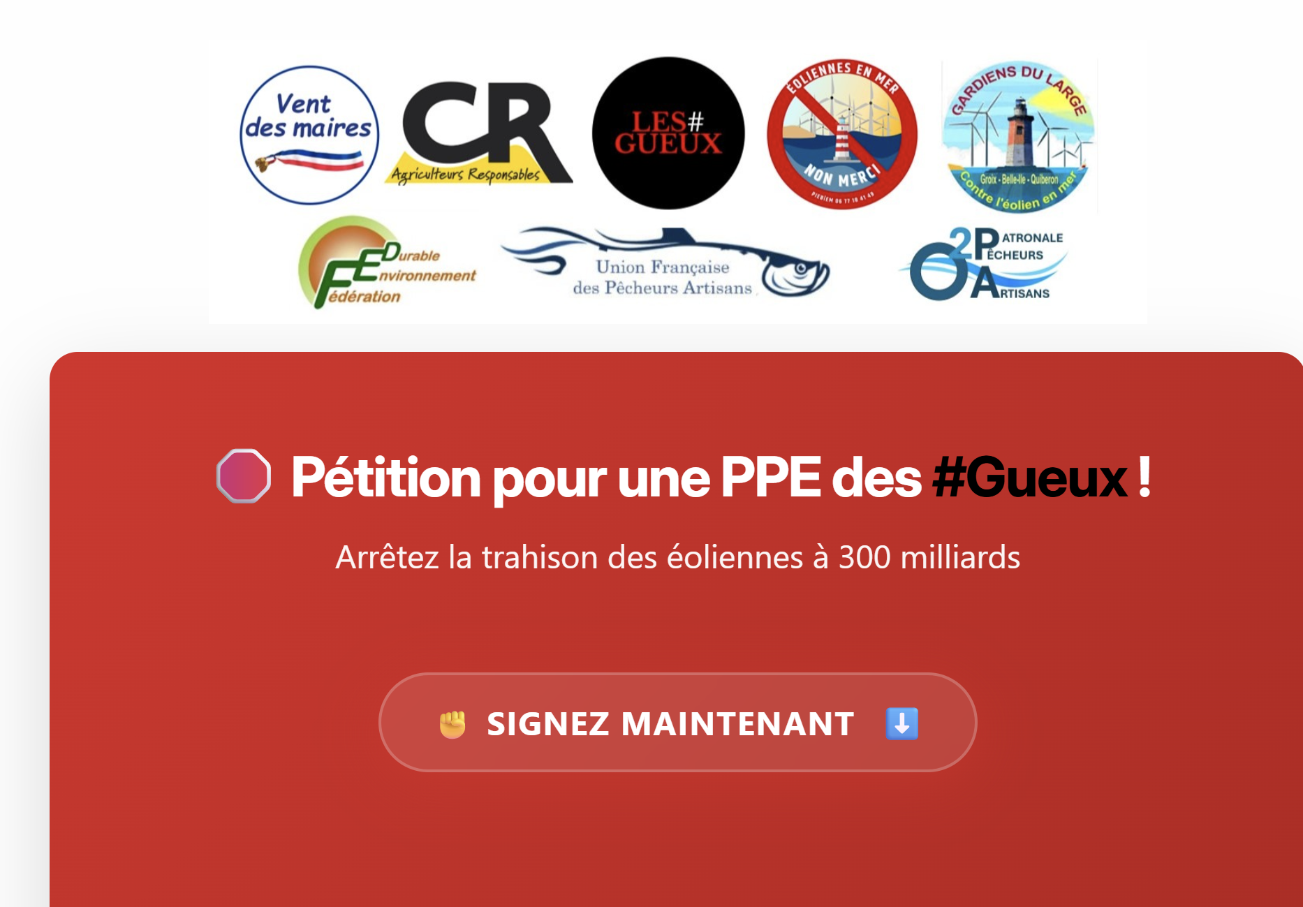 5) PPE3 (Programmation Pluriannuelle de l'Energie) et la Commission Gremillet (2): une résistance s'organise sur l'éolien en mer. L'amendement PPE des « Gueux » : « Si les premiers retours de la Commission Gremillet ne semblent absolument pas à la hauteur des défis de la PPE3, notamment concernant l'éolien en mer et sont en contradiction avec même la démocraties environnementale la plus élémentaire (les conclusions de la Mer en Débat) ;, une bonne surprise est peut-être possible. Dans un amendement poussé par les Gueux, des députés LR estiment à au moins 300 milliards les couts inutiles dus aux développements des ENR et appellent à un moratoire. Concernant plus spécifiquement l'éolien en mer, il gagnerait à être complété par un amendement plus précis et plus conforme aux vœux des associations, qui demande la suspension de délivrance de toute nouvelle autorisation environnementale sur l'éolien en mer ( amendement RN) lien