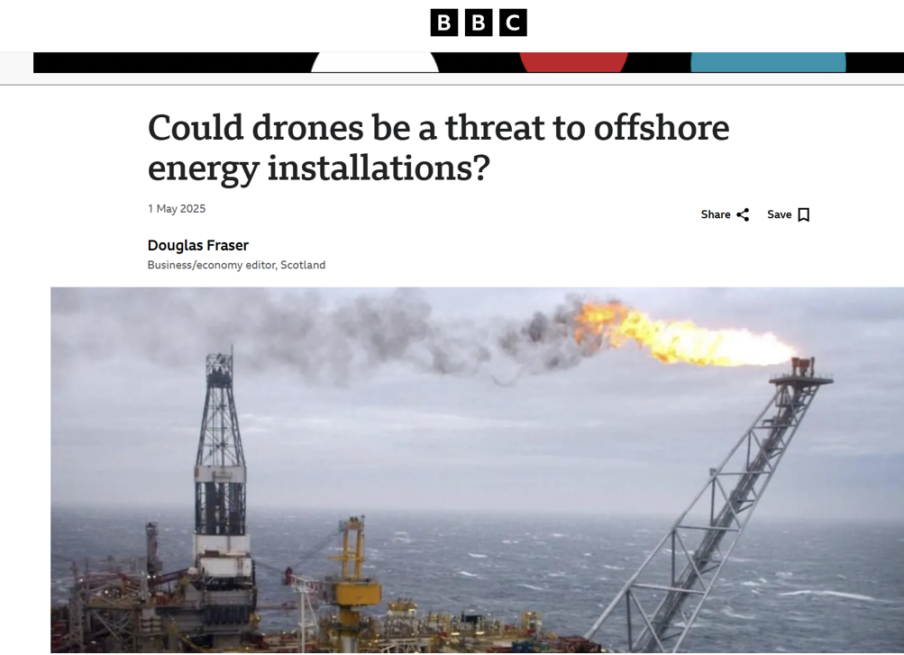 4) Attaques de drones et navires autonomes : « Les attaques de drones contre les parcs éoliens peuvent couper l'approvisionnement en électricité des consommateurs en endommageant les éoliennes, comme cela s'est produit en 2024 lorsqu'un drone russe a attaqué un parc éolien britannique en Ukraine. Des navires autonomes sont également déployés pour l'étude offshore des parcs éoliens (Ørsted, 2024). Selon le ministre suédois de la Défense, Pål Jonson, les robots de croisière et les robots balistiques constituent un problème majeur pour l'énergie éolienne offshore. Une étude polonaise met en garde contre la facilité avec laquelle une charge explosive peut être déplacée vers la zone d'une éolienne ou de câbles sous-marins à l'aide d'un drone ou d'un navire autonome ». lien