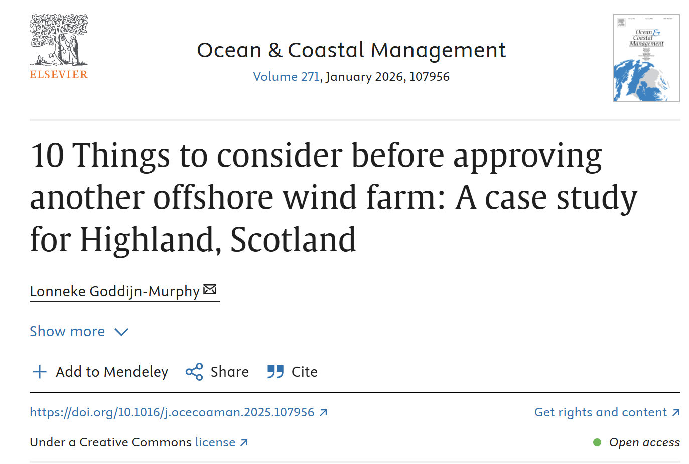 12) Santé mentale : les bienfais méconnus de l'« espace bleu » . « Les habitants et les visiteurs de la région des Highlands ont assisté ces dernières années à une augmentation sans précédent du nombre de parcs éoliens et d'infrastructures connexes, et de nombreux autres projets sont prévus. Il est difficile de trouver un endroit où l'on ne voit pas d'éoliennes, et l'une des dernières vues intactes est celle de l'océan à perte de vue. L'horizon de la côte est est déjà fortement impacté par les grands parcs éoliens offshore de la mer du Nord, et la côte nord est menacée. »
