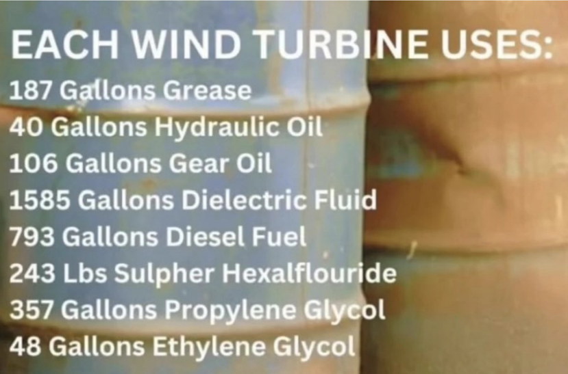 Les fuites d'huile nuisent à l'environnement et, en mer, une petite quantité d'huile contenant toutes sortes de composés chimiques peut se répandre sur une grande superficie. Il existe d'importantes lacunes dans les connaissances sur la composition des huiles et leur impact sur l'environnement, mais la prise de conscience s'accroît et des recherches ont commencé à être publiées… Une éolienne offshore peut contenir jusqu'à 1400 litres de diverses huiles (LAIIER, 2025) qui pourraient être déversées en cas de catastrophe naturelle ou d'accident. »
