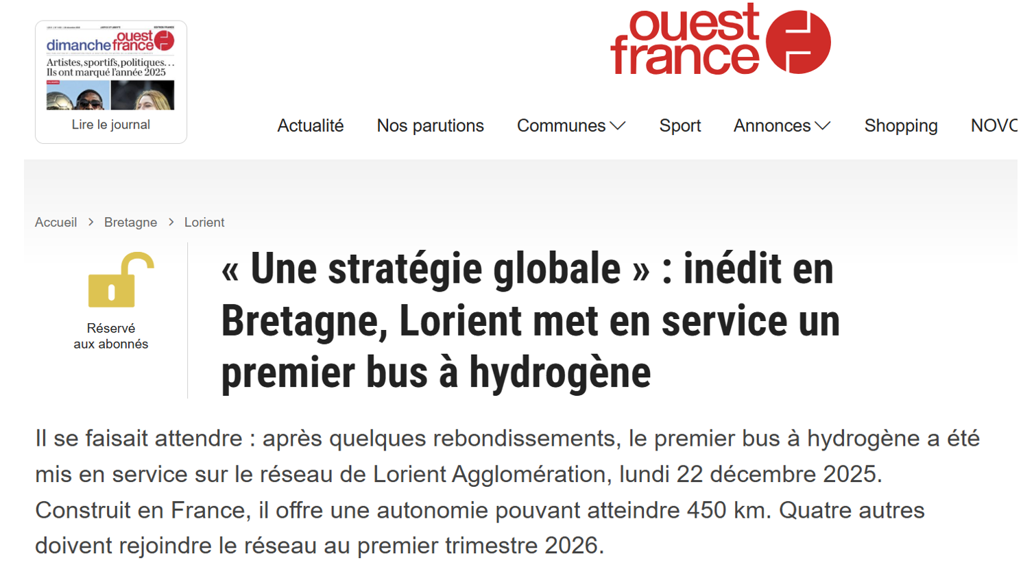 Le 22 décembre 2025 Fabrice Loher, maire de Lorient, annonçait un investissement lourd de l'agglomération dans les bus à hydrogène- dans la même semaine, Liverpool et Dijon annonçaient y renoncer ! Un projet à contre-courant tant l'électrique prend le pas sur l'hydrogène dans la mobilité lourde : coûts d'investissements et de fonctionnement, technologie mal maitrisée et pannes fréquentes, faillites en séries des fabricants de bus, difficultés des producteurs d'hydrogène, sécurité- rien ne va, surtout lorsque Fabrice Loher prétend se procurer l'hydrogène à partir des éoliennes en mer ! PIEBÎEM fait le point sur une catastrophe annoncée. 1) Des bus très chers à l'investissement - un choix absurde et idéologique ; 2) Un choix à contre-courant, la preuve par Liverpool, Dijon, Paris, Pau ; 3) Un choix de fournisseur de bus sans expérience et risqué ; 4) L'Hydrogène par électrolyse, qui plus est produit en mer-est « une « innovation perpétuellement émergente »- et une aberration physique ; 5) Les difficultés de Lhyfe qui ralentit sur l'hydrogène comme carburant pour la mobilité et passe à la décarbonation des carburants classiques ; 6) Et la sécurité ? Pas tellement maitrisée en dehors de l'industrie lourde