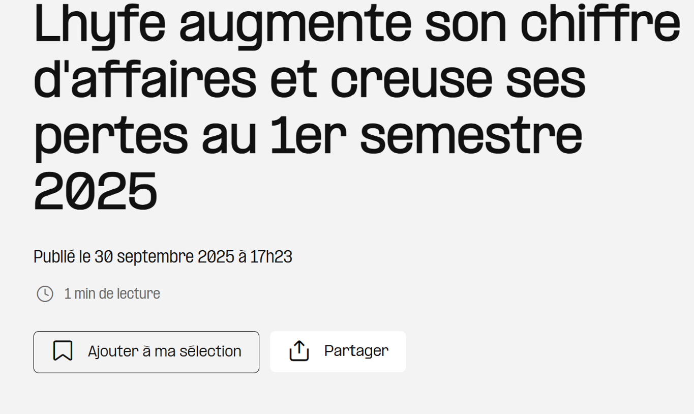 En septembre 2025, Lhyfe annonçait tripler son chiffre d'affaire et... augmenter considérablement ses pertes, preuve d'un modèle dysfonctionnel : « Lhyfe publie un chiffre d'affaires de 4,6 millions d'euros au 1er semestre 2025, soit le triple par rapport à la même période en 2024. La perte d'exploitation du Groupe s'élève à 19, 8 millions d'euros (contre 13,3 M€ au 1er semestre 2024). La perte nette pour la période s'élève à 21,7 millions d'euros (contre 14 M€ au 1er semestre 2024). Lien