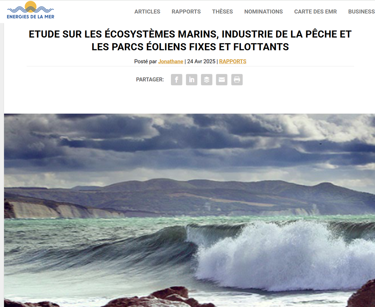 - En conclusion, le rapport identifie d'abord une lacune majeure dans la politique actuelle le manque d'outils fiables pour évaluer les impacts cumulatifs. Les professionnels de la pêche mettent en garde contre un avenir insoutenable : « Nos pêcheurs disent que la révolution de l'énergie verte se construit au-dessus de leur tête et à travers leurs zones de pêche souvent sans consultation ni compensation a déclaré un représentant des parties prenantes. »