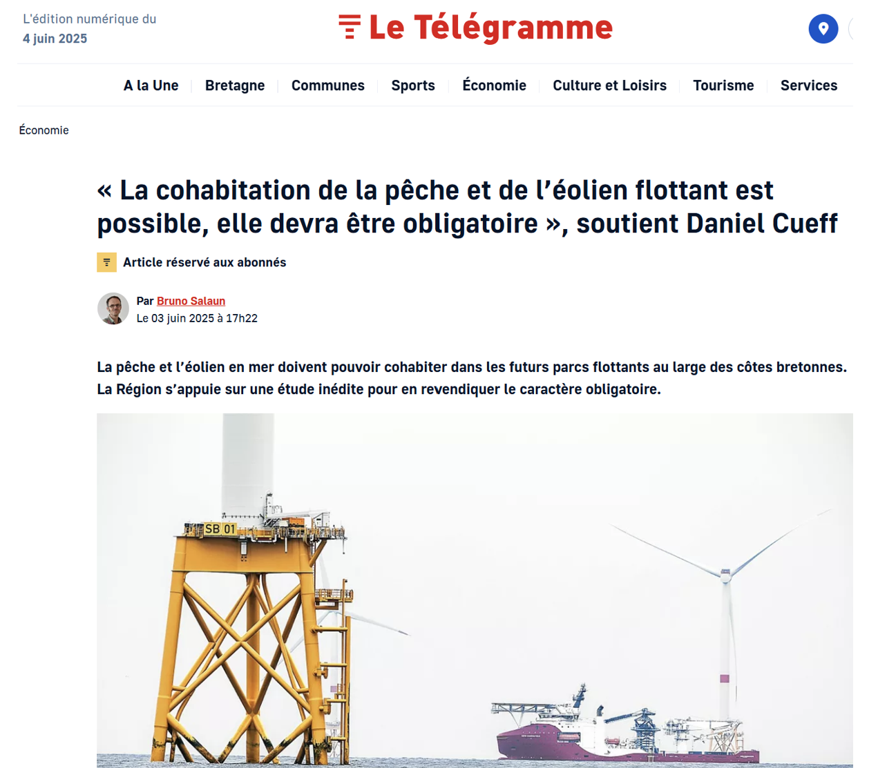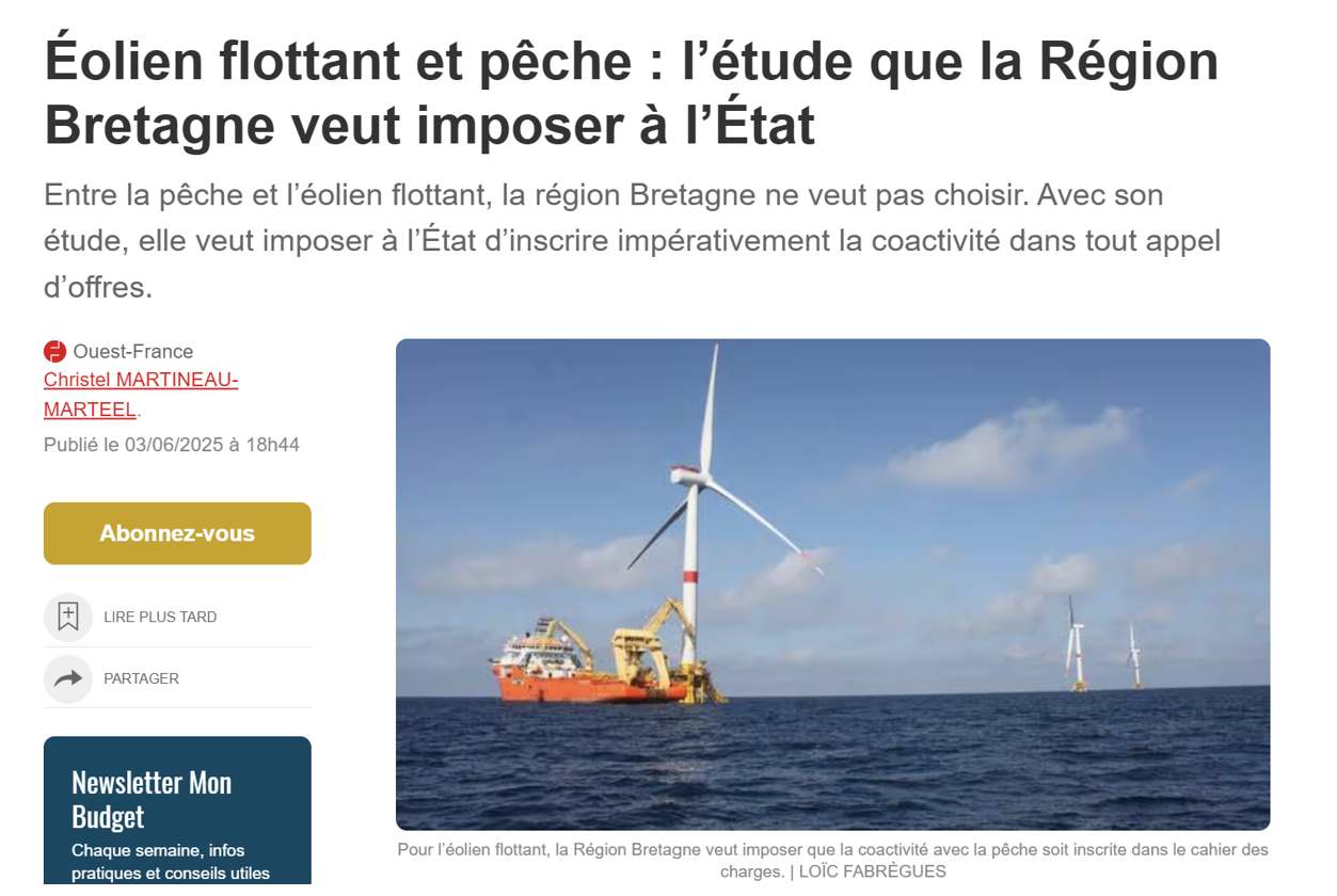 Pêche et éolien en mer : Daniel Cueff tente de convaincre que pêche et éoliennes flottantes sont compatibles, mais un rapport de l’Union Européenne dit le contraire !
