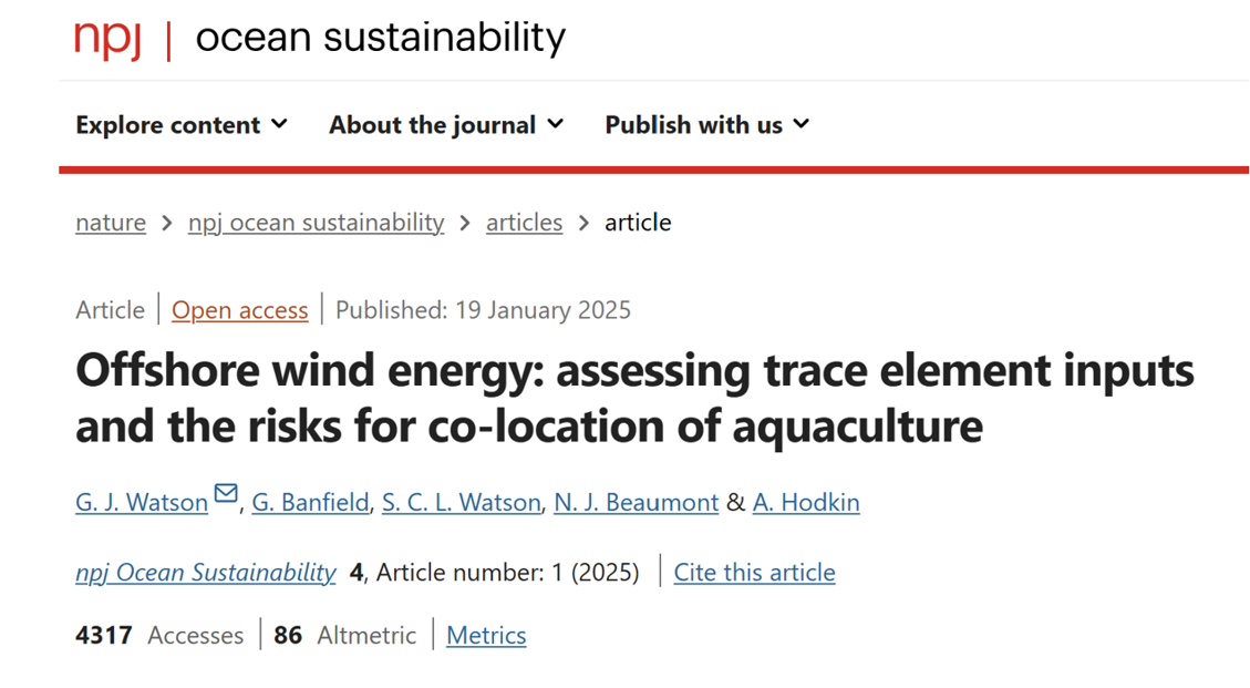 Une étude publiée dans Nature Partner Journals Ocean Sustainability a révélé que les produits chimiques utilisés pour protéger les aérogénérateurs des zones industrielles éolien en mer contre la corrosion libèrent « des milliers de tonnes de métaux tels que l'aluminium, le zinc et l'indium » chaque année, suffisamment pour atteindre des niveaux toxiques. Source Watson, G.J., Banfield, G., Watson, S.C.L. et al. Offshore wind energy: assessing trace element inputs and the risks for co-location of aquaculture. Ocean Sustain 4, 1 (2025). Lien