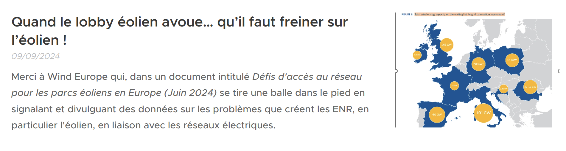 Extraits de l'article de S. Wajsbrot: Pourquoi l'Eolien et le Solaire pourraient être contraints de brider leur production lien