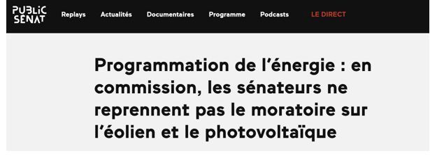 Très forte mobilisation du lobby éolien en mer qui a trouvé un porte-voix avec le Sénateur Mandelli (LR,Vendée) et tenté même de faire passer en urgence les appels d'offres éolien en mer par décret. Le Sénat maintient sa position et n'accepte pas le moratoire éolien et solaire proposé par les LR et RN de l'Assemblée, acte 200TWh de renouvelables supplémentaires en 2035 et 18 GW d'éolien en mer- ignorant les avertissements de l'Académie des Sciences. Dans une tribune libre du Figaro, Bruno Retailleau, François Bellamy et Julien Aubert expriment une position dont on ne sait trop si elle sera la position officielle des LR : stopper les subventions publiques pour les renouvelables qui devront ainsi faire face à la vérité des coûts. Elle suscite une forte opposition des marconistes et même de certains LR . Très grosse confusion ;à suivre.