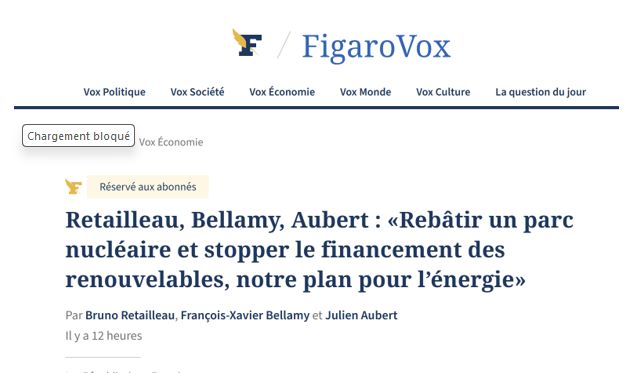 3) La position Retaillau/Bellamy/Aubert : rebâtir un parc nucléaire et stopper le financement des renouvelables : Le Figaro, lien