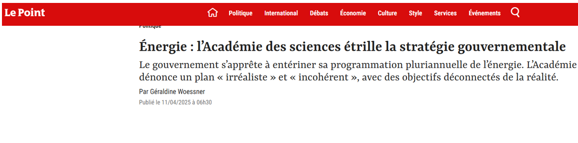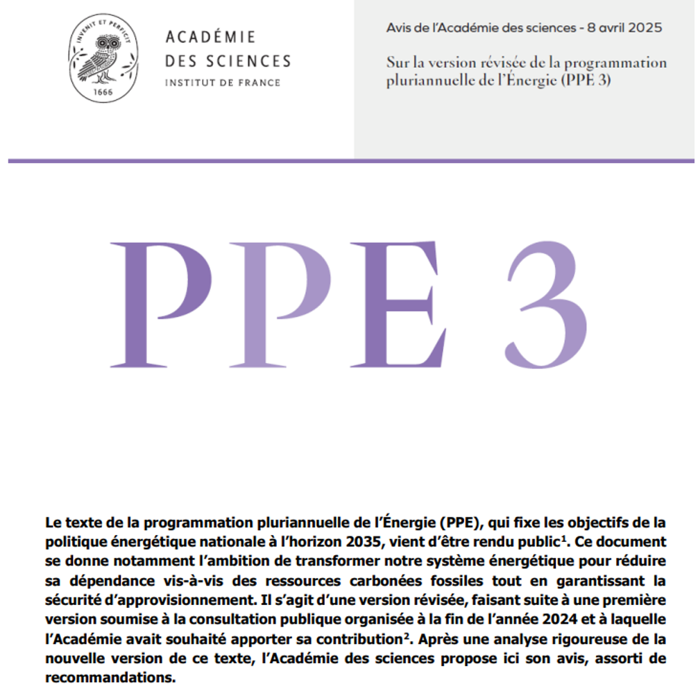 Extraits : Pas à la hauteur des enjeux », « incohérent », « irréaliste »… Les qualificatifs pleuvent, et ils ne sont pas tendres. Alors que le gouvernement s'apprête à entériner par décret sa nouvelle programmation pluriannuelle de l'énergie (PPE3), censée tracer la route de notre avenir énergétique jusqu'en 2035, l'Académie des sciences publie un avis corrosif, rejoignant les critiques déjà formulées par l'Autorité environnementale, le Haut Conseil pour le climat, ou le haut-commissaire à l'Énergie atomique… Dans un avis publié ce 8 avril, l'institution dresse un réquisitoire contre ce document stratégique, épinglant tout à la fois sa méthode et ses ambitions.
