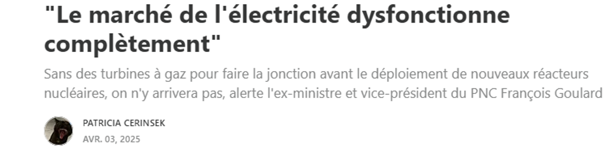 3) François Goulard : La vérité des coûts réels et totaux des énergies fatales intermittentes doit être révélée, ce qui devrait changer profondément le regard qu'on leur porte lien