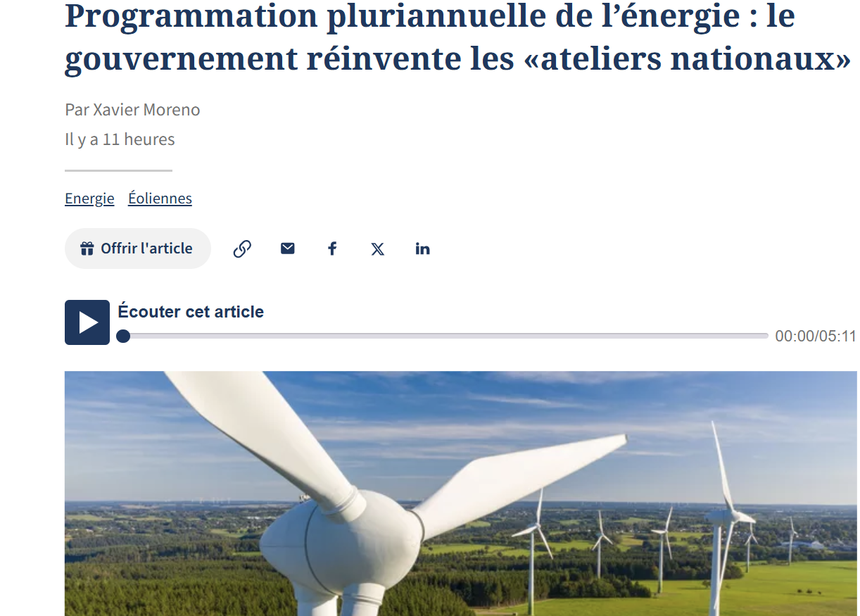 Excellente tribune du Président du Cérémé dans le Figaro. publiée sous le titre énigmatique Programmation pluriannuelle de l'énergie : le gouvernement réinvente les «ateliers nationaux » lien . Extraits: