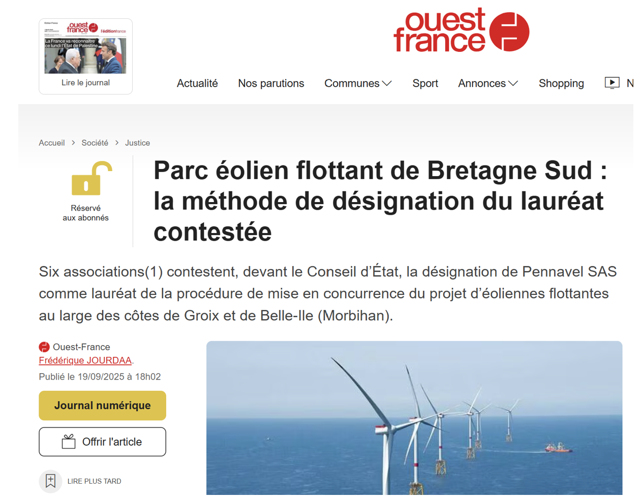 L'attribution de Bretagne sud 1 ne serait pas contestable par les associations. Et pourtant !