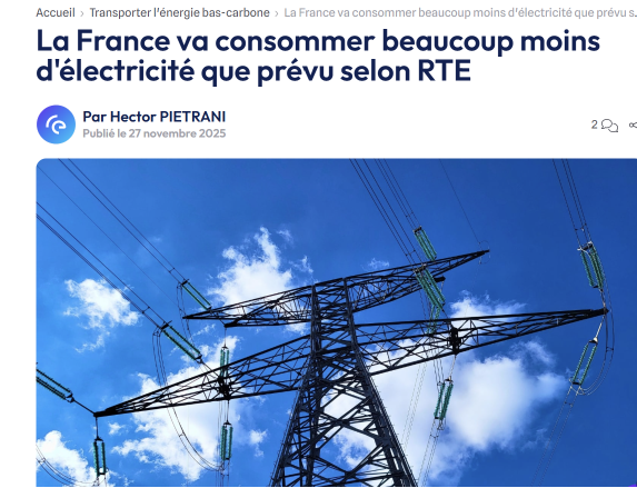 2) La France va consommer beaucoup moins d'électricité que prévue : aveu tardif et encore insuffisant